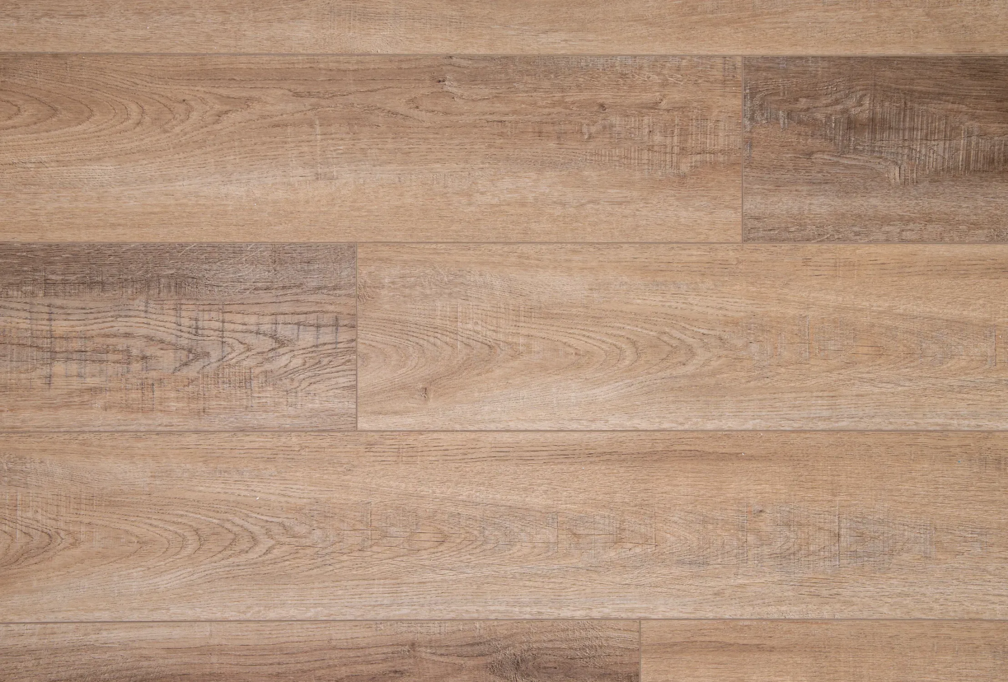Синхронный рельеф совпадает с рисунком декора — поверхность неотличима от натурального паркета